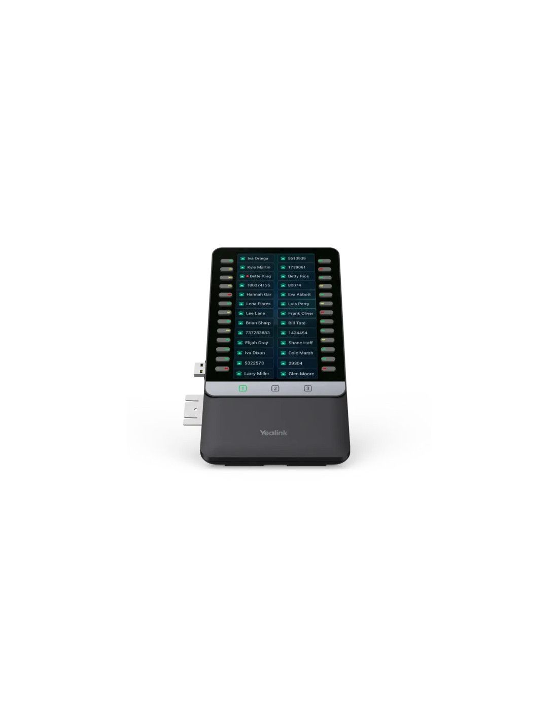 Il dispose de 26 touches physiques avec LED bicolores par page, soit jusqu’à 78 touches programmables sur 3 pages. Ces touches peuvent être assignées à des fonctions telles que le BLF, la numérotation rapide, le transfert, le parcage d’appel ou le renvoi. Trois touches de navigation dédiées permettent de changer rapidement de page.